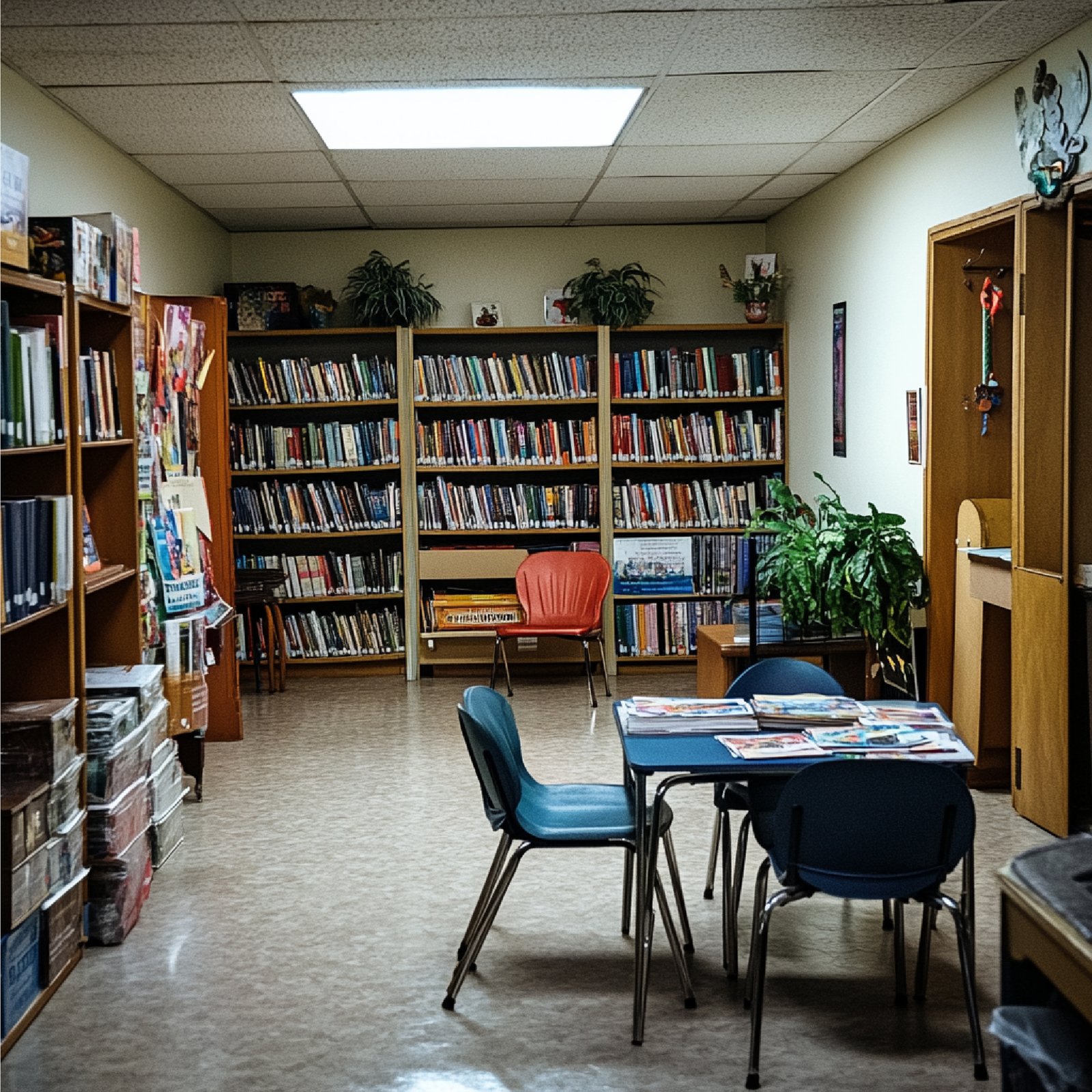 A well-stocked library with a wide range of academic and reference books for students.
